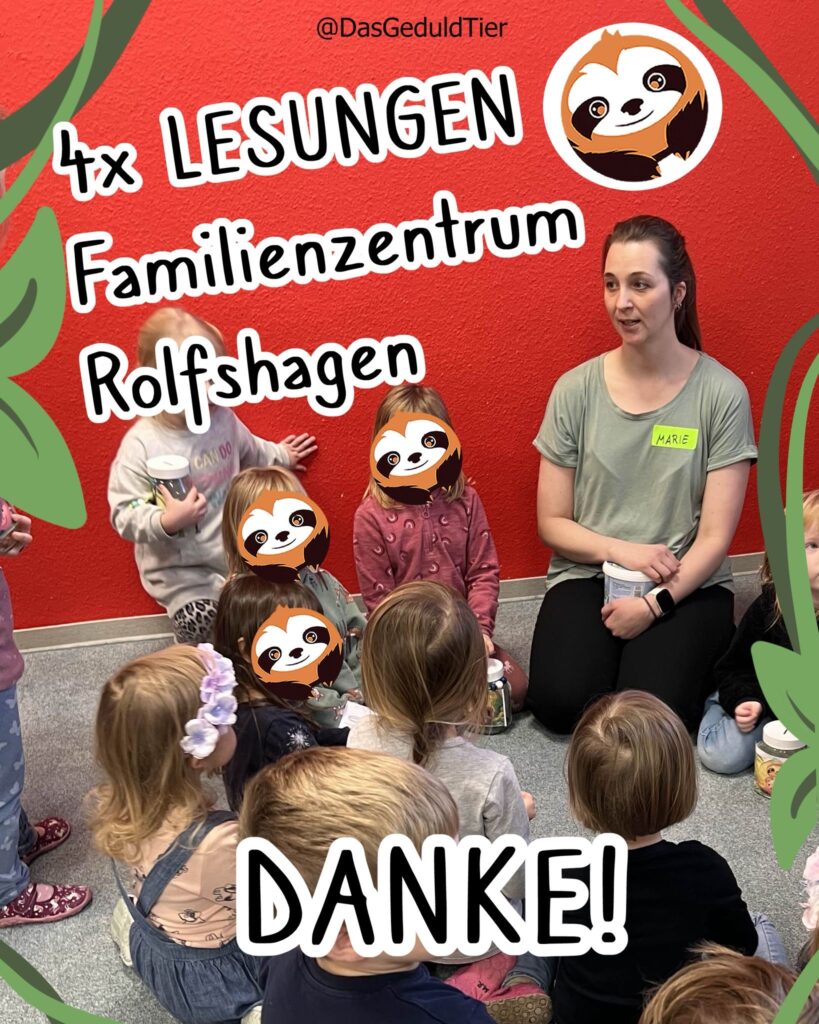 2025 erreichte uns die Anfrage aus einer KiTa in unserem (Sina&Marie) Heimatort Rolfshagen. Nach einigen Überlegungen im Team entschieden wir, dass wir den Weg auf uns nehmen würden, um im Januar etwas Neues auszuprobieren: 2 Tage, 4 Lesungen, 95 Kinder (plus engagierte Eltern). Der volle Wahnsinn! Diese Lesung sollte anders werden, als das was wir zuvor schon gemacht hatten! Da wir dank der phantastischen KiTa Leitung Beate und ihrem Team auch ein Angebot für die Eltern machen konnten im Zusammenspiel mit einer Infoveranstaltung der deutschen Vermögensberatung. Für uns als GeduldTier-Bande war das schon etwas größeres , sodass wir auch unser Konzept der Darstellung anpassen mussten. Immerhin saßen nun auch noch zahlreiche Eltern im Publikum. Wir haben unsere eigene Mama zur Unterstützung auch gleich mitgebracht.