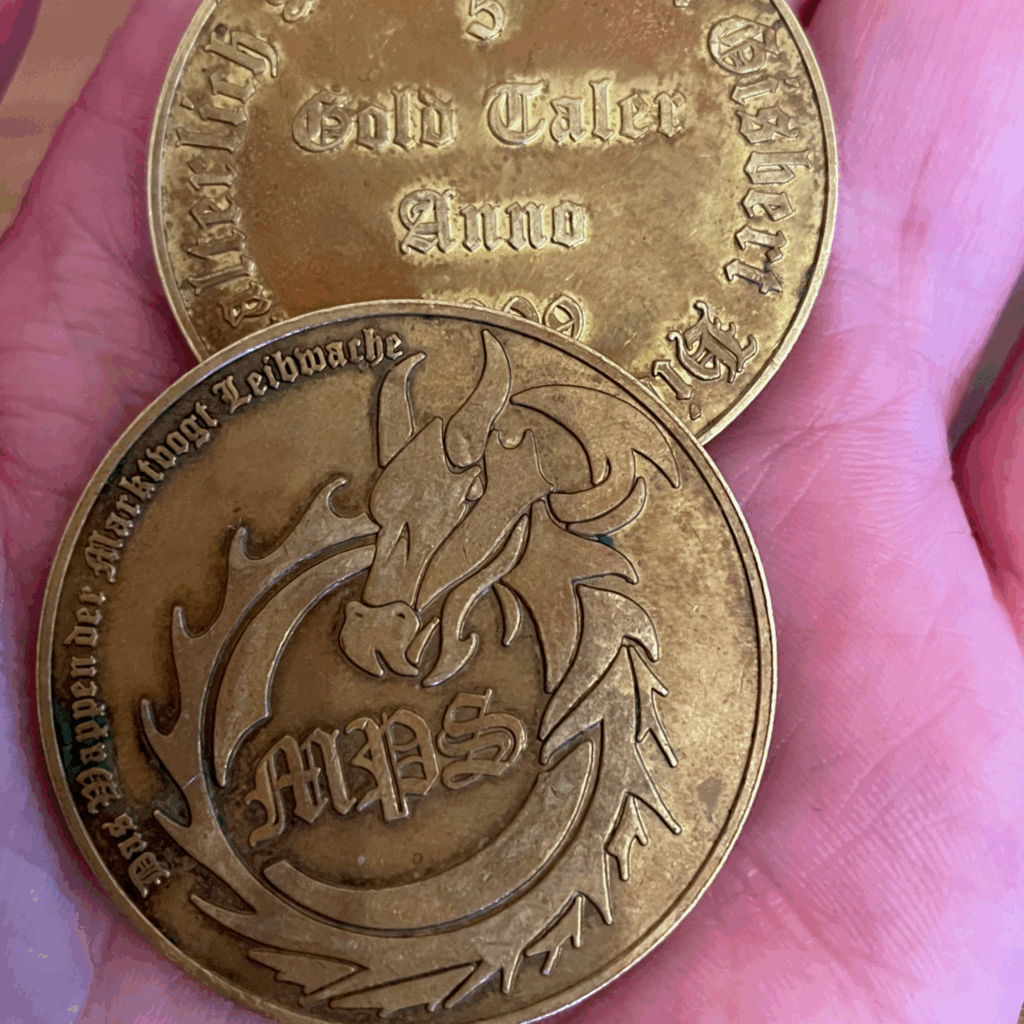endlich komme ich dazu einen Beitrag zu schreiben, der keine Produktwerbung ist. In den letzten Wochen hat unser Crowd Funding Projekt eigentlich alle Kapazitäten gefressen, aber heute möchte ich eine spannende Geschichte über Münzen erzählen aus Rastede (31.05.2025). Das GeduldTier war nämlich mit mir unterwegs auf einer mittelalterlichen Zeitreise. Wir waren auf dem Mittelalterlichen Phantasie Spectaculum zu Rastede am Himmelfahrtswochenende. Grundsätzlich waren wir dort nicht als Geduldtier GbR unterwegs, aber ich hatte eines unserer ersten Druckexemplare und Flyer dabei und konnte das auch stolz einigen unserer Unterstützer als Vorab-Preview zeigen. Das erste Feedback war auch ganz toll, sodass wir wirklich stolz auf die Arbeit der letzten Monat zurückblicken können. Ich möchte nochmal sagen, wie cool wir unsere Community finden. Herzlichen Dank.
